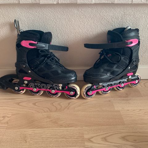 Fine rulleskøjter der kan justeres fra str. 34-37. Brugt, men fungerer fint. Skal have ny bremsklods.