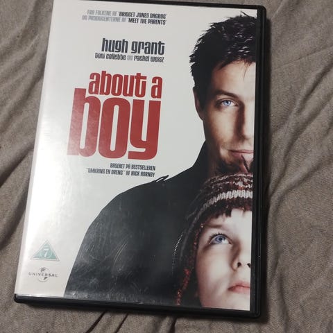 About a Boy DVD featuring Hugh Grant. Drama film available in standard DVD format. The cover shows the main characters and includes bonus materials such as behind-the-scenes footage and interviews.