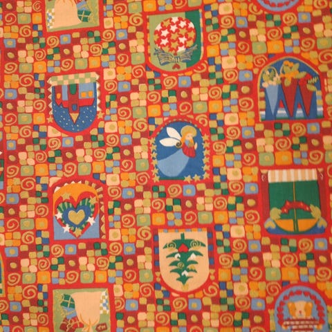 Smuk Sødahl dug, 82x86 cm. Guldtrykket er som nyt, også den blå farve, men desværre er der en plet, se markering på billede.