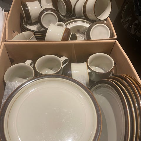 Stellet består af 1 tekande 3 sukkerskåle/syltetøj. 3 flødekander 2 tekopper 16 kaffekopper. 6 flade tallerkener. 12 dybe tallerkener/skål. 16 dessert tallerkener. 22 underkopper. 81 stk i alt.
