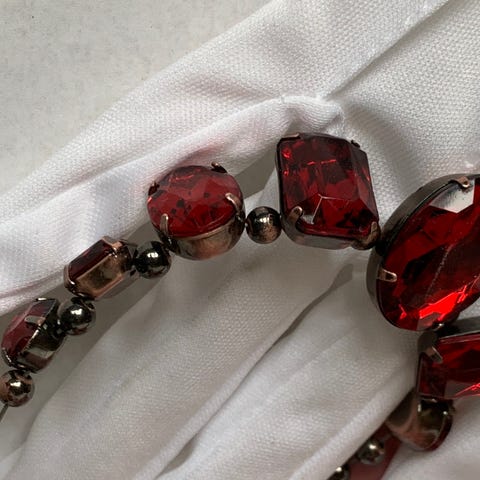 Ved ikke så meget om dem men det er sorte/hvide sten i halskæden, virker marmor-agtigt. Armbånd er sort onyx agtigt. Har set billeder af det der ligner hvor der står jade men er i tvivl