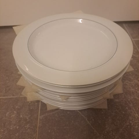 Royal Copenhagen, Lyngby Fajance tallerkener med firkantet form og dekorativt grøntsagsmotiv. Tallerkenerne er lavet af fajance og har et klassisk design. Velegnet til servering af mad i hjemmet.