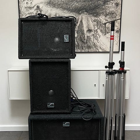Højttalere: 2 x 8" bashøjttalere og 1" membrankompressionsdriver