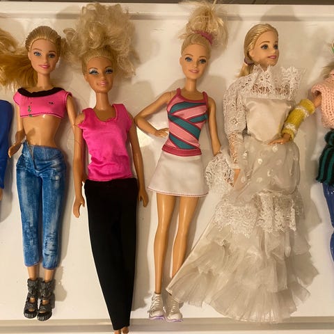 Barbie dukker med tilbehør inklusive forskellige sæt tøj, sko og accessories. Sættet indeholder flere dukker i forskellige størrelser og forskellige typer tøj som kjoler, bukser, jakker og badetøj. Der er desuden et udvalg af sko i forskellige farver og stilarter, samt diverse accessories til dukkerne.