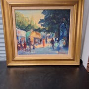 Maleri i guldramme. Små og få afskalninger. 61x42cm og 63,5x44,5 inkl. ramme.