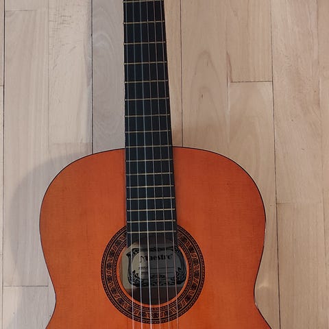 Concerter en gammel guitar Fra Korea der mangler to strenge