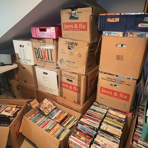 4stk flyttekasser med alt i DVD film fra Action, horror, sjove , porn , cowboy, kærligheds story , tag alle 4 kasser for 1500 kr sælges også i stk pris . ring hvis du vil vide mere
