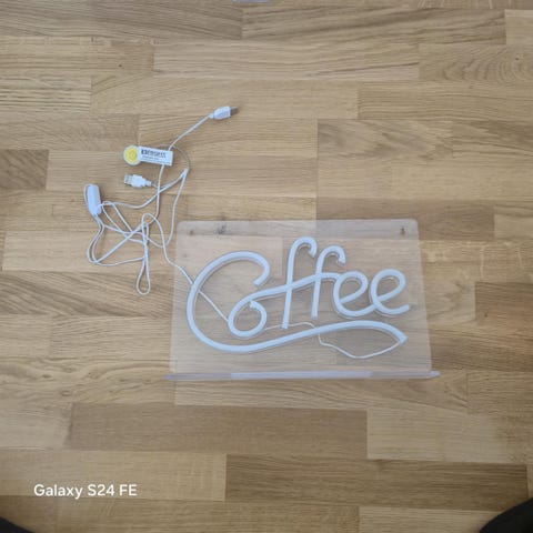 Smart LED skilt med "open" tekst - illustreret som tegn for Coffee. Kan bruges i butikker, hjemmet eller hvor som helst.