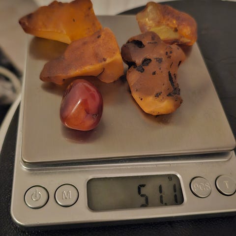 30 gram ravstykker med hul til smykkefremstilling.