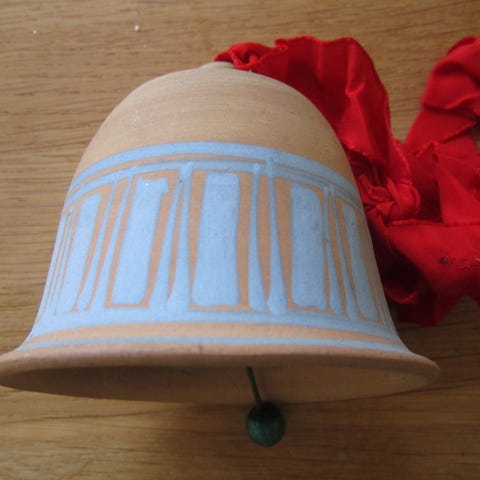 Fin unik klokke drejet i træ. Højde 14 cm.