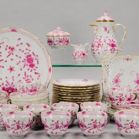 12 personers spisestel med skåle og fade og 12 Personers kaffestel kom med et bud. Brugt få gange pris er bare sat som fiktiv😃