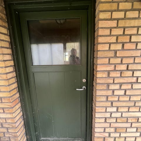 Det er en klassisk kvalitetsdør fra KPK i den populære svenskrøde farve. Den har stået tørt og sikkert opbevaret og passer perfekt til dig, der mangler en lidt mere kvadratisk dør fx til udhus, anneks eller specialbyggeri.