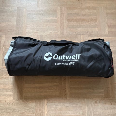 Højtkvalitets telt fra den danske producent Outwell. Det samme sælger for sovepose og liggeunderlag. Teltet er kun brugt til en enkelt overnatning. Sovepose og liggeunderlag har aldrig været brugt (det købte jeg senere hen). Alle 3 ting er fra samme serie, og i samme farver.