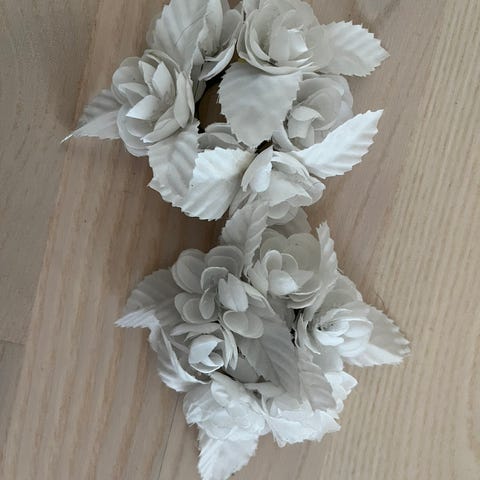 Flotte kniplede lysmanchetter m. gule silkebånd, som naturligvis kan udskiftes