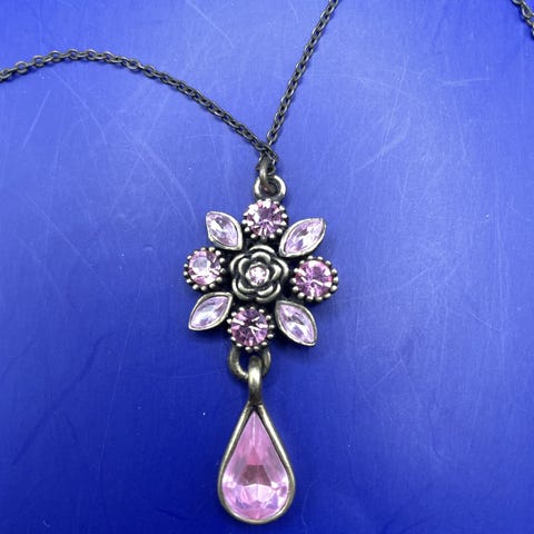 Gummikæde med stort vedhæng i rosenkvarts.