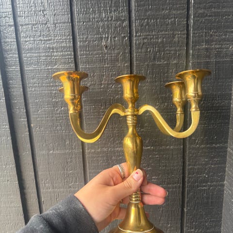 5-armet lysestage i messing - smuk & klassisk. Kan bruges hele året. Kronelys passer perfekt.