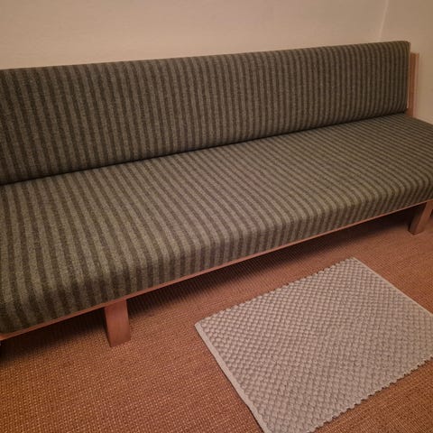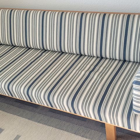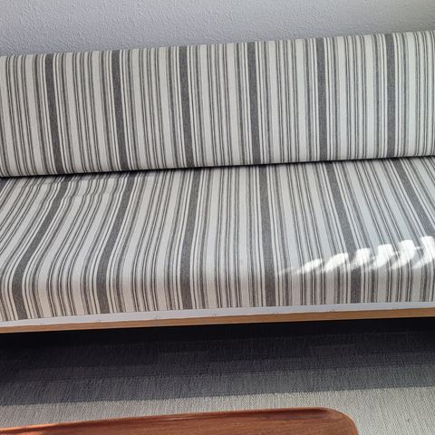 Flot sovesofa med nyere betræk. Er falmet lidt på madrassen men ses ikke når den står som sofa. Se billede 2.