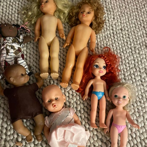 Forskellige størrelse dukker. Tøjet skal vaskes