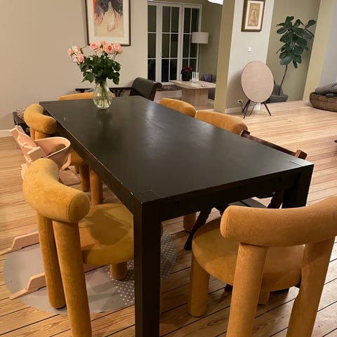 Har været brugt som kreabord hos os selv. Derfor også lidt tusch og små mærker på pladen. Kan nemt slibes og med lidt olie kommer det til at fremstå (næsten) som nyt.