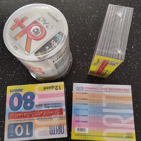 CD-R, CD-RW, DVD-R, DVD+R RW.