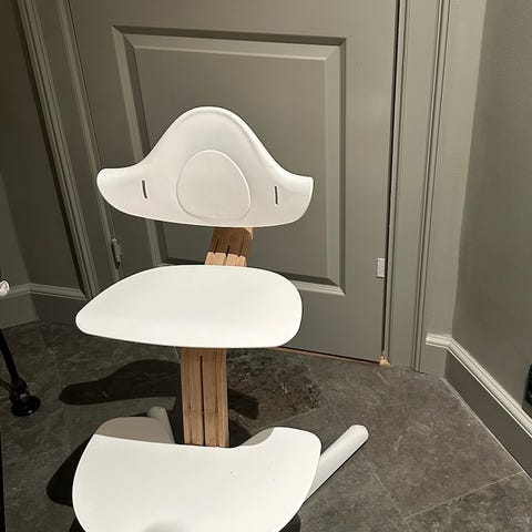Stokke Højstol Børnestol med sort sæde og trædetaljer
