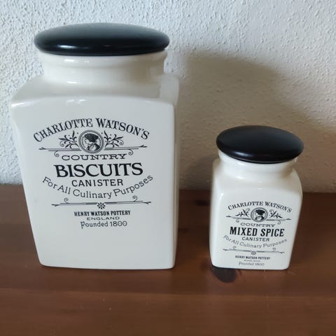 2 beholdere fra Henry Watson Pottery, i serien “Charlotte Watson”.