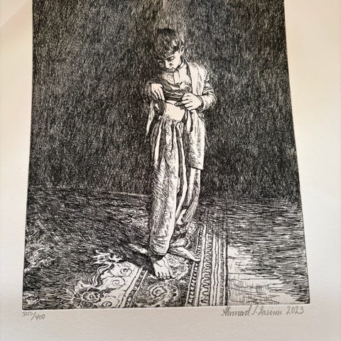 Kobbertryk af Grafik Michael Baastrup Chang. Flot i farver og papirstruktur!