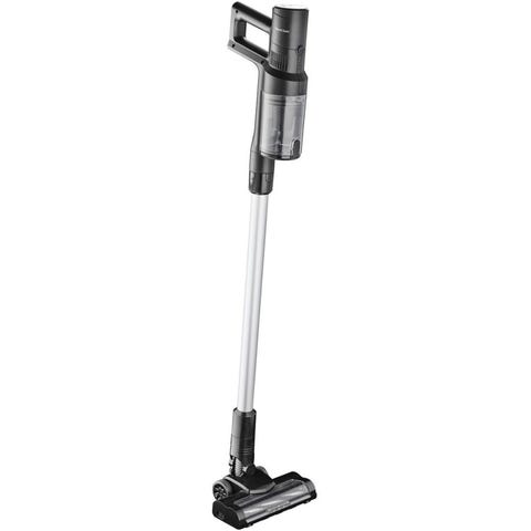 Nordic Sense Støvsuger ledningsfri håndholdt model i hvid farve. Designet til nem rengøring med trådløs funktion, inkluderer en lang stang og motoriseret børste til effektiv støvsugning af gulve og tæpper. Kan hænges på væggen.