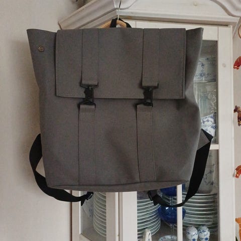Diesel rygsæk i beige og sort farve. Tasken har justerbare skulderremme og flere rum til opbevaring. Materialet er slidstærkt og designet til daglig brug.