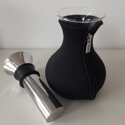 Denne tebrygger fra Eva Solo giver dig mulighed for at fylde teblade uden garvesyre, der kan trække i ubegrænset tid, direkte i kanden. Sæt filteret i og så er du sikker på at bladene bliver i kanden når du hælder op. Hvis det derimod er en te der kun skal trække i begrænset tid, kan du fylde bladene ned i filteret. Når den er færdig med at trække, kan du trykke stemplet i bund - du behøver ikke fjerne hverken teblade eller filtret. Den er drypfri og har et vippelåg der automatisk åbner op, når du skænker. Den medfølgende dragt sørger for at holde teen varm.