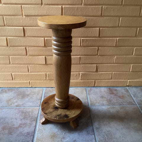 Blomster opsats i egetræ oliebehandlet med rund base og top. Har en dekorativ, snoet søjleformet midtersektion. Velegnet til blomster. Højde 55 cm diameter 21 cm.