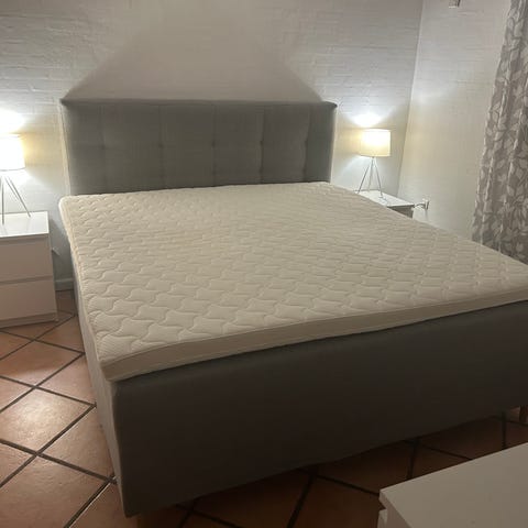 Sengen ligger rigtig godt, og stoffet er uden mærker og pletter. Kommer fra et rent og velholdt hjem.