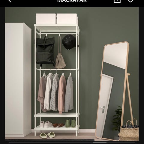 Medfølger to bøjlestænger, som også kan sættes på, på midten af stativet, kan evt. ses på Ikeas hjemmeside.