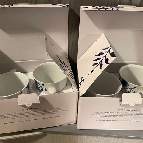 Royal Copenhagen Blue Fluted Mega Krus 4 stk. og Blue Mega Riflet 2 stk