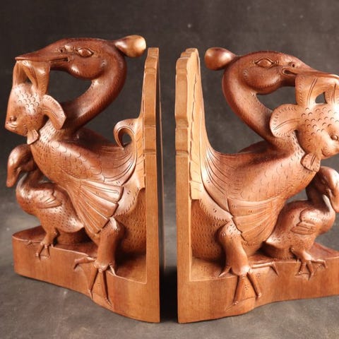 Gl. Bogstøtter, bronce/teak træ, højde 31 cm.