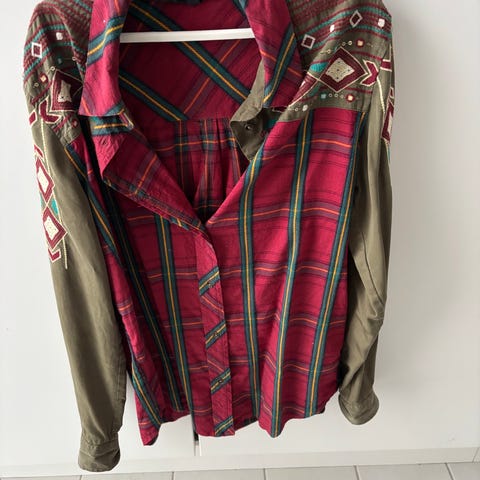 Ny skjorte. Har løs pasform og print i sort og andre farver. Løs pasform