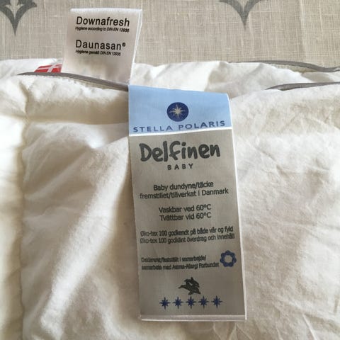 2b. Nomite, flad, Delfinen baby, gåsedun/gåsefjer, 40x45 cm, totalvægt 105 gram, 70 kr, billed 1 og 2