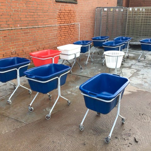 Velkørende vogne egnet til industrivaskeri, hvor tøjet skal sorteres inden vask,