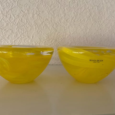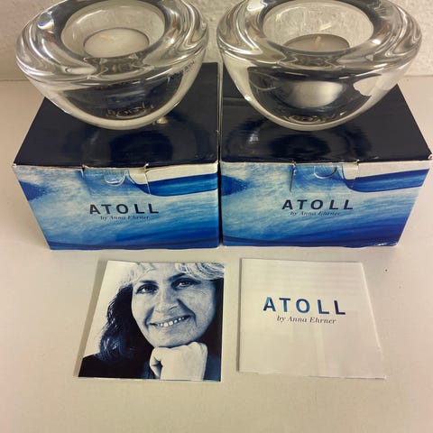 2 stk Kosta Boda glasskåle i en smuk blå farve, model Atoll. Størrelsen passer til fyrfadslys eller som små serveringsskåle.