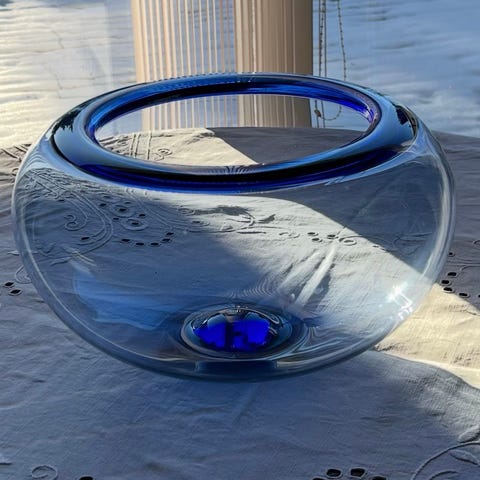 Holmegaard Kastrup Glasværk Glas Skål lavet af blå glas. Provence skål i flot stand.