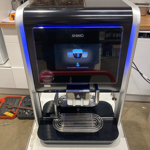 Brugt Animo OptiFresh 4 NG 2.0 instant-kaffemaskine, velegnet til professionelt brug i kontorer, kantiner, værksteder, butikker og andre miljøer med højt kaffeforbrug.