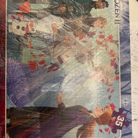 Clementoni Frozen II børnepuslespil med 30 brikker. Puslespillet forestiller figurerne Anna, Elsa og Olaf fra Frozen II filmen. Brikkerne er lavet af pap og puslespillet egner sig til børn.