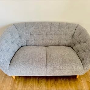 grålig Fave,og sæbe behandlet egetræ ,som NY brugt få gange da jeg altid sidder i min trepersoners sofa.