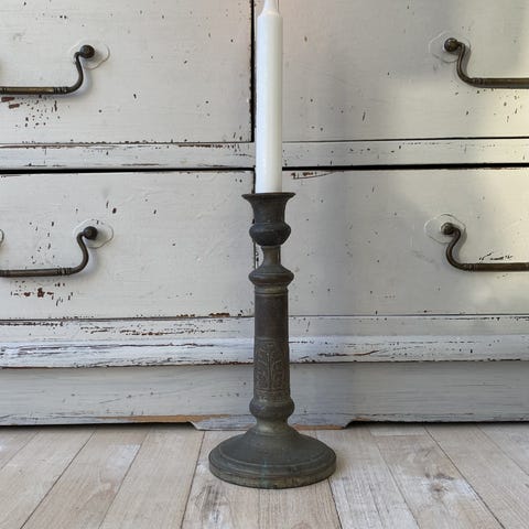 Gammel fransk kammerstage, Fransk antik, fransk vintage, Gammel fransk lysestage i messing – også kaldet kammerstage. Smuk og enkel i udtrykket og med en virkelig smuk patina. Gode i en gruppe med flere lysestager. Stammer omkring år 1900.