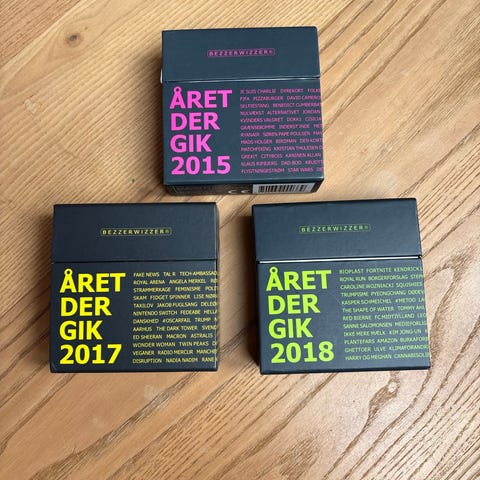 Bezzawizzers Året 2019 Familieudgave og Året der gik 2021 brætspil. Spil med spørgsmål om begivenheder og fakta fra årene 2019 og 2021. Familieudgave egnet til både børn og voksne. Indeholder kort med spørgsmål og svar om aktuelle emner fra de respektive år.