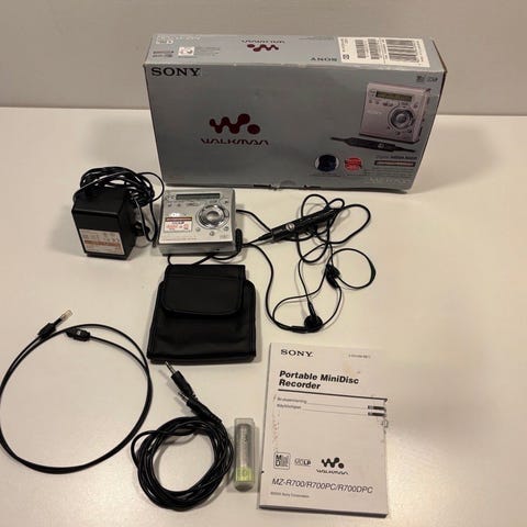 Inklusive 10 brugte MiniDisc og 4 uåbnede MiniDisc.
