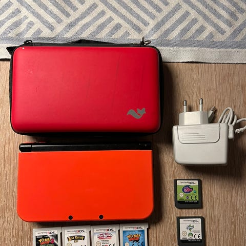 Flot velholdt Nintendo 3DS XL med lader , xtra smådele og 4 spil til.
