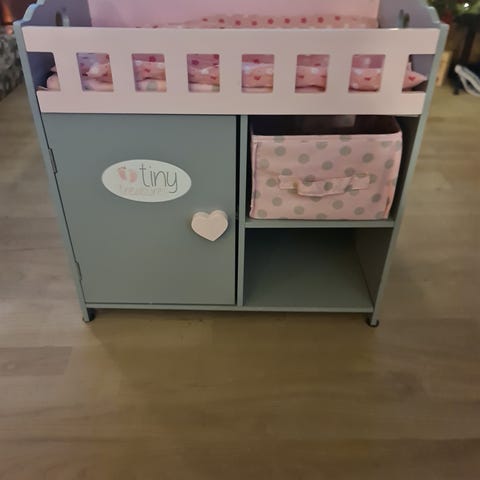 Dukkesengen sælges sammen med lift, madras, dyne, pude og tæppe.