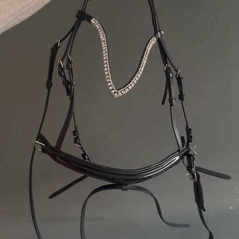 International Deluxe Folaal hovedtøj lavet af sort nylon. Produktet er fremstillet i Indien og designet til brug på heste. Materialet sikrer holdbarhed og funktionalitet.