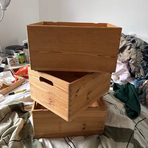 Opbevaringskasser i træ med håndtag, 2 stk, 30 x 40 x 22 cm